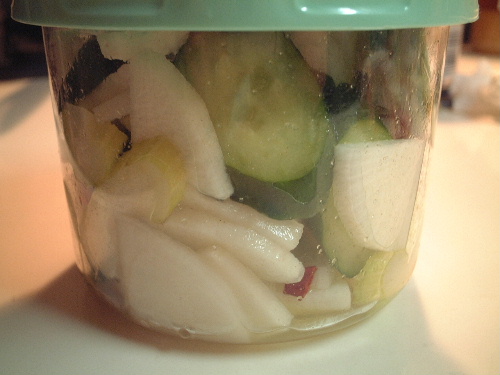 写真がないので、昨日漬けた浅漬けの変化を披露しよう。