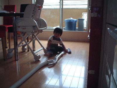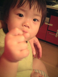 と、ブログへ書きこんでいると、けいたんまん登場。歯ブラシを持たせて、「はみが、しゅっしゅ」とさせていたら、飽きたようだ…
