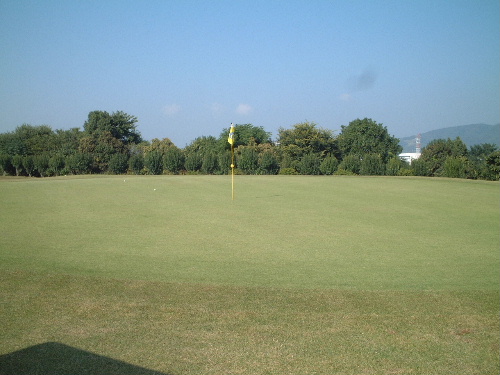 ←ごめん。カメラマン(私)の腕が悪く、こんなショットしか撮れなかったが、ゴルフ場の風景。これを撮ったのは、「みて!このフラットなコース!」と気持ちが込められているからだ。