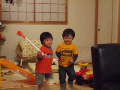 いとこ同士で、大いに遊び、満喫したようだ。おもちゃを取ったりあげたりで、見ていておもしろかった。
