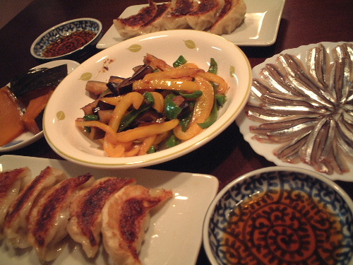 最近は、シソを入れるのに凝っているのだが、今日はセロリ(これがうまいっ!)を入れたので、香味野菜はこれだけにした。たかの爪とだしの元が決め手。