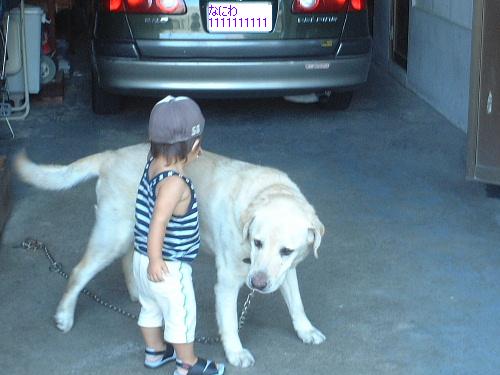 こんなに大きい犬でも、へっちゃらで飛びついて行くので、こっちがはらはらするが、この子は大丈夫だ。毎日顔を合わせる仲なので。