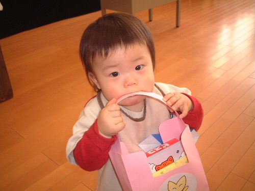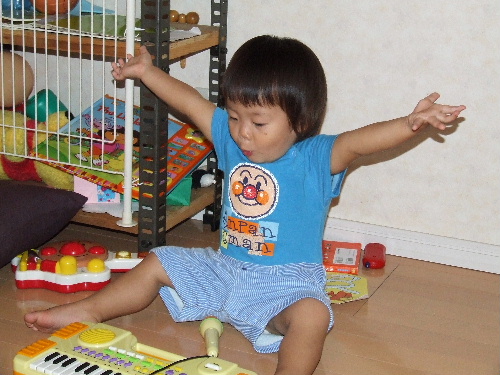 帰ってから、第2回お昼寝。と、そこへジャムおじさん(よっしーの兄)登場。ジャムおじさんのお家で夕食を御呼ばれする予定なのだが、もう来ちゃった。起こされて、バイバイ。そう、ママは今日は同僚のパーティーでお出かけなので、一緒には行けない。ちゃんとお別れには、泣いてくれた。(ニコニコではいささか寂しいのでね)