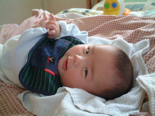 この頃は、ママに甘えてくるようになり、嬉しいやらうっとおしいやらで複雑だ。暇なときはよいのだが、夕飯の準備をしている時などに、小猿のようにぶらさがられるとね… でもやっぱ嬉しい。