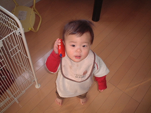 そう言えば最近のけいたんまん、言葉を沢山しゃべれるようになってきた。元々しゃべり始めるのは少し早かったのだが、最近は本当に目覚しいのだ。昨日は「おっち~」で、今日は「おっち~ね~」と会話になるようになったり、昨日覚えた言葉を、今日もう一度言ったりと、これはおもしろい。もうすぐ1歳9ヶ月だが、我が子はもしかして賢いのではないか?(はい、親ばか)