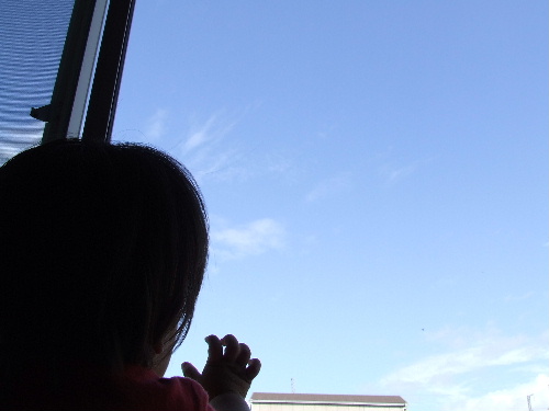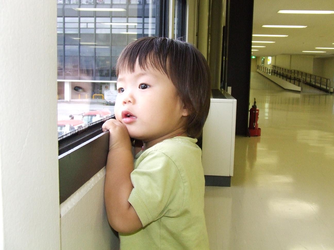 窓という窓に、こうやってへばりつき、「ぶーん、ぶーーん!おっちぃ~ね~~!」とこの真剣な表情で熱いまなざしを飛行機へ向け、なかなかゲートへ進めない。