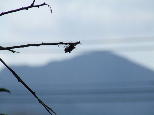 実家の庭の木をよーく見たら、ミノムシかな?ちょうちょもよく飛んできて、けいたんまんを喜ばせてくれているお庭。