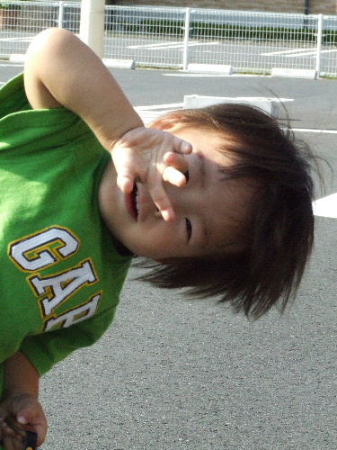 いざ帰るぞと、車へ向かうと、運転席へ一目散。「降りなさい」といい、降ろそうとすると、「どいてよー」と手を払い、怒られた。