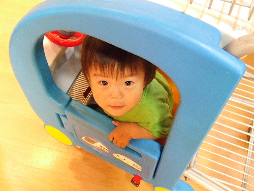 店内でも暴れ放題なので、←これに乗せてあげたら、またまた大喜び。