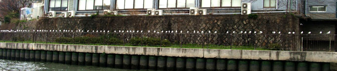 一番上のは、ボートでお花見してるときに、かもめらしき鳥が手すりにぎっしりとまっていたのだ。白いのがその鳥たち。