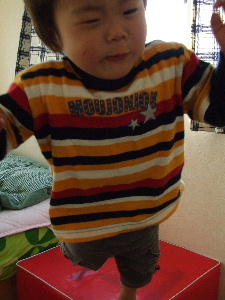 どこまでも突っ走るけいたんまんを、よっしーが捕まえて肩車。 ご機嫌さんです。